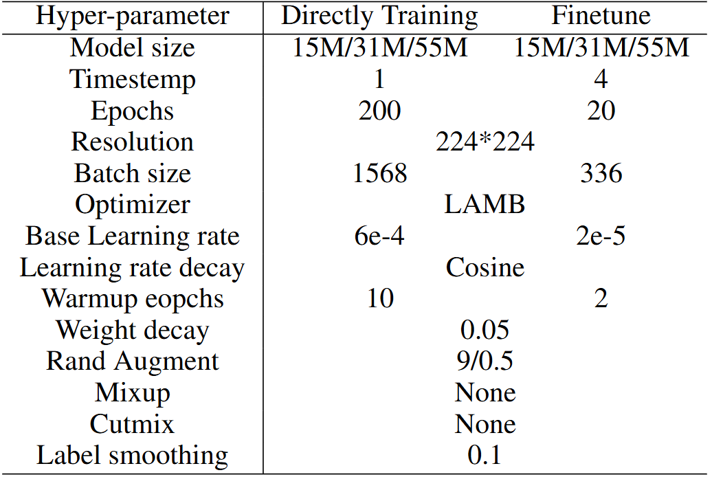 모델 성능을 위해 $T=1$로 200에폭 동안 프리트레이닝을 시킨 뒤 $T=4$로 파인튜닝 했다.